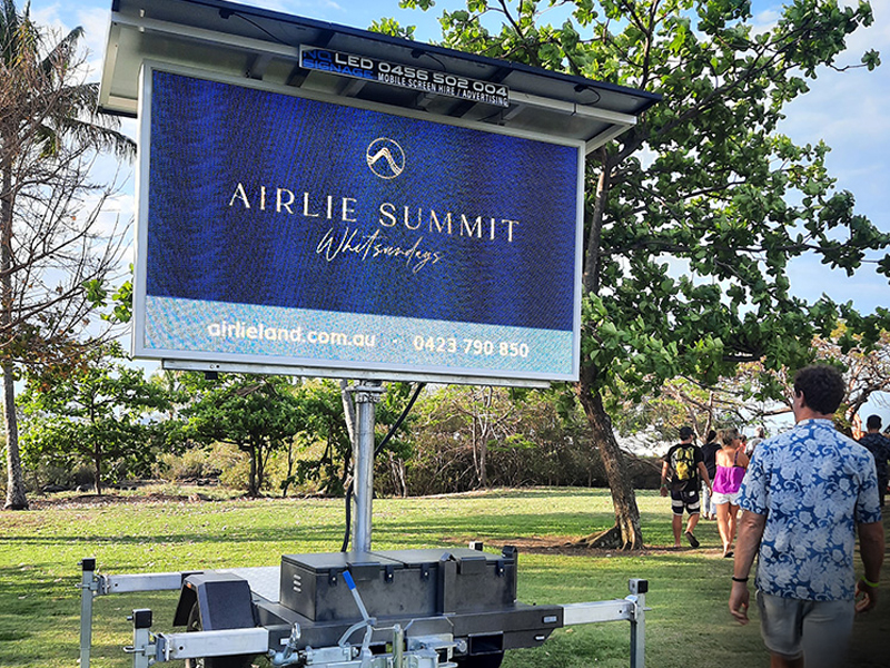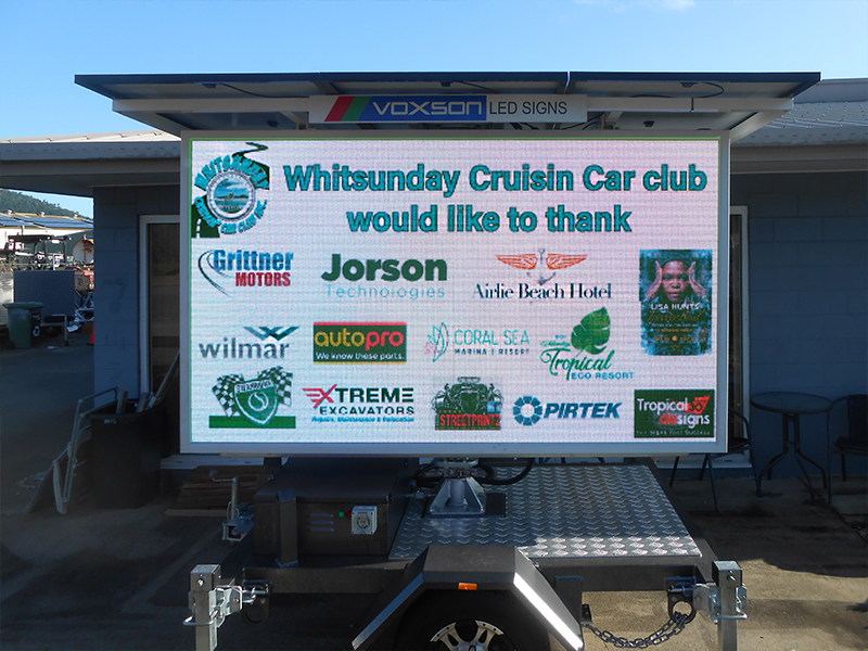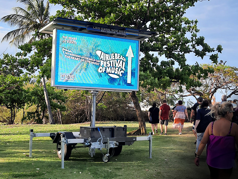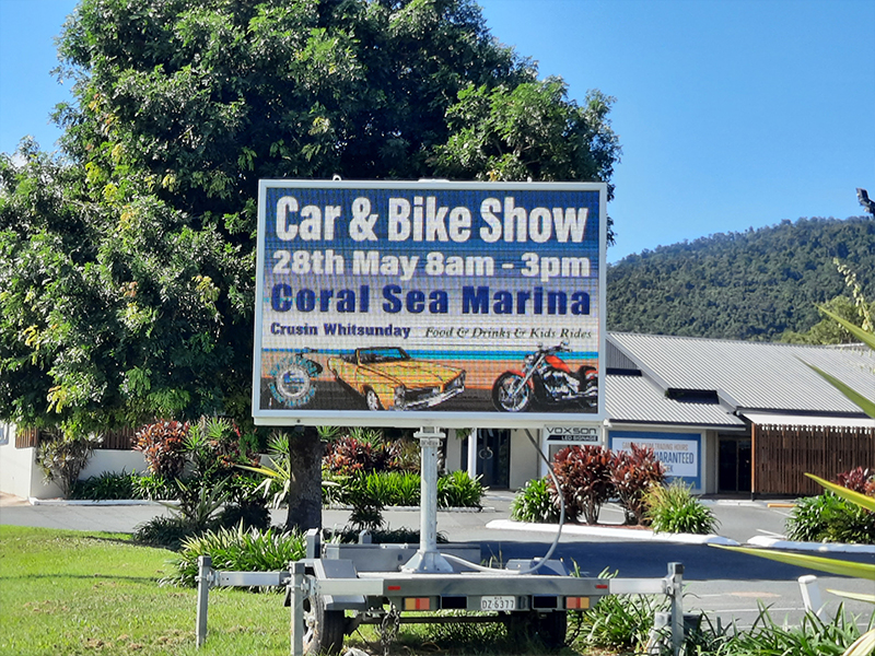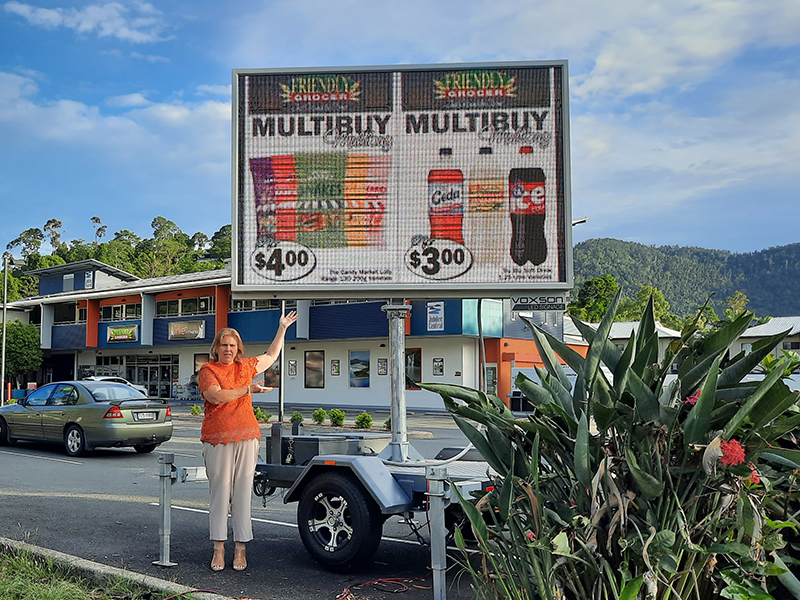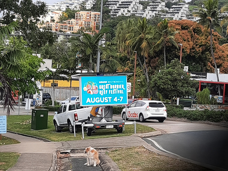 It’s a fresh new way to advertise in the Whitsundays! These trailer-mounted LED screens can display full-colour images and videos, and you can update your message quickly and easily.